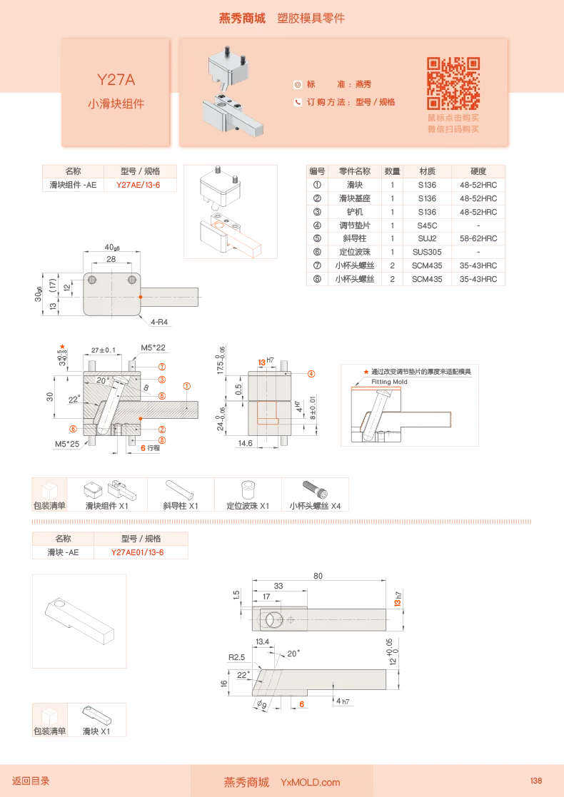 / Y184U形复位块 腰型复位块 KO连接块 顶模块 70*70*29